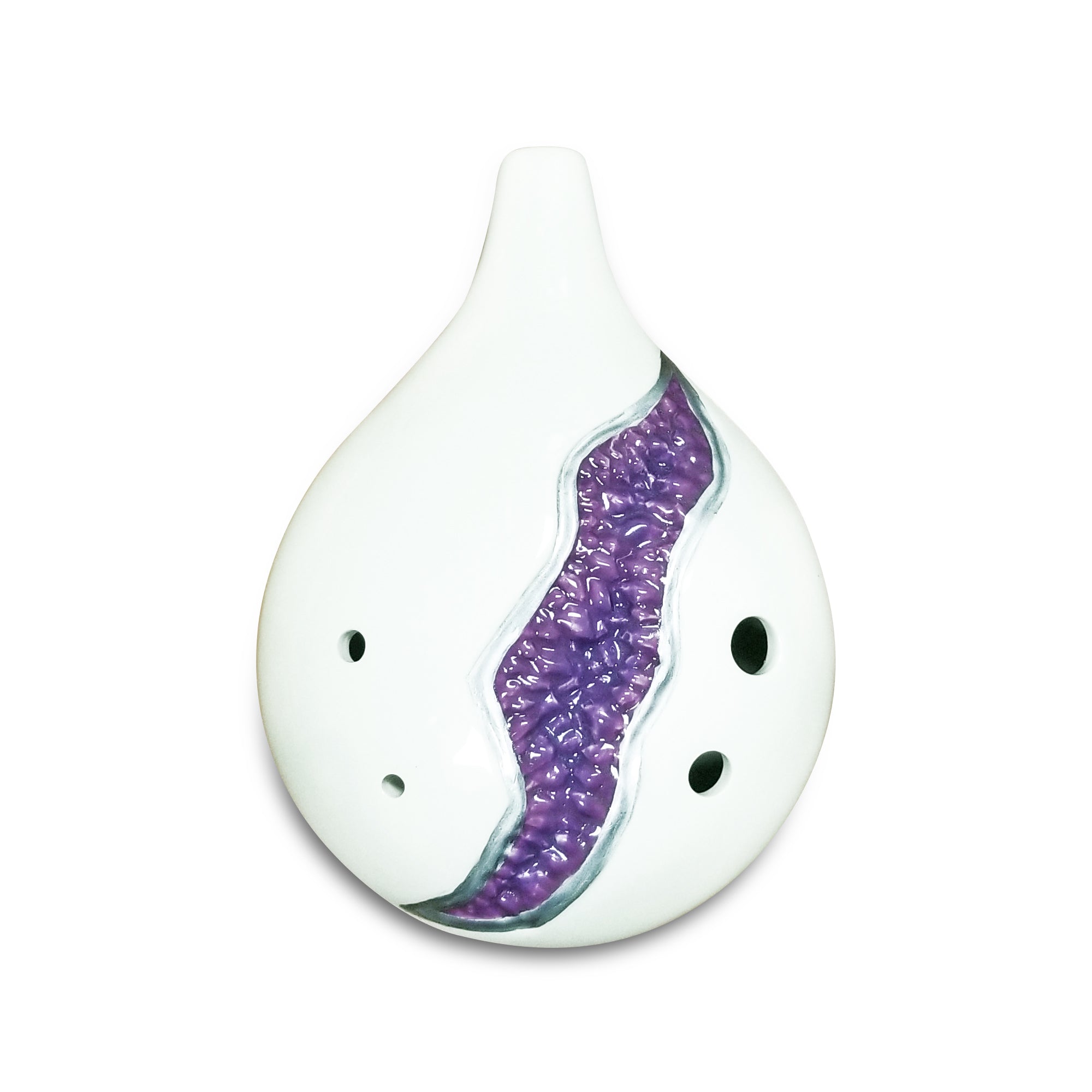 This ocarina is sure to be a gem in your collection with its elegant design and rich sound. Inspired by beautiful geodes, amethysts, and geode cakes, the Geode Ocarina is designed with small hands and bass lovers in mind.