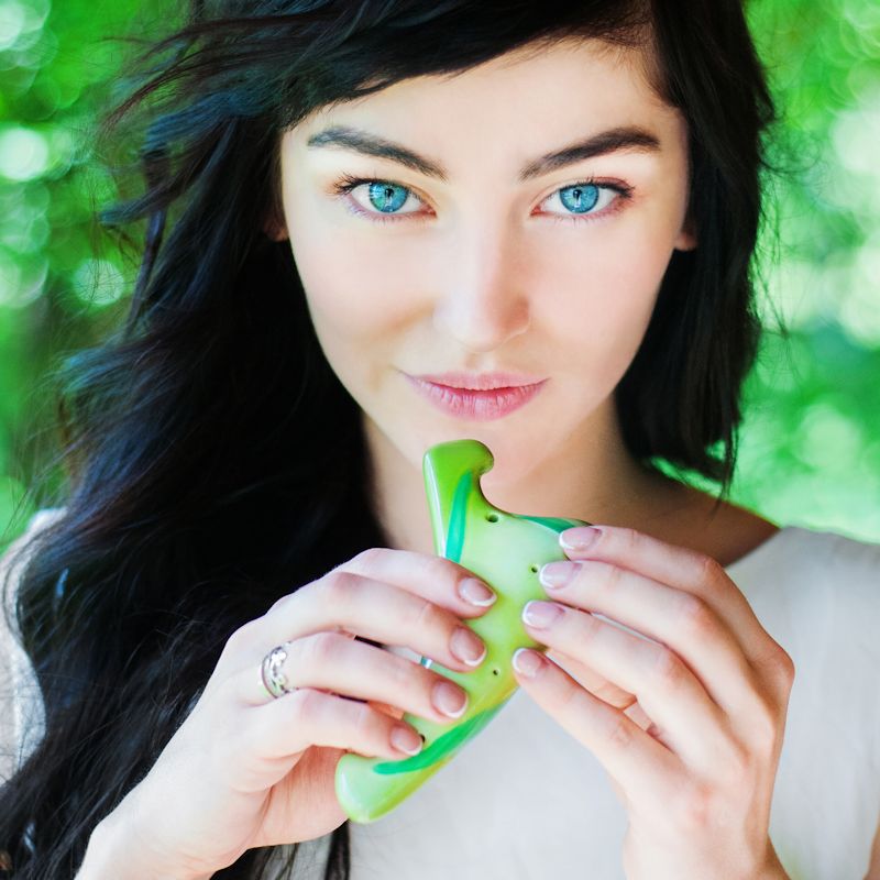 This ocarina offers a flawless design that aids in delivering an impeccable tune. The calm light green of this ocarina in combination with the darker green streaks gives a fresh breath of air to life as you know it. For growth, harmony and balance this ocarina will sweep everyone off their feet and leave them feeling the true joy that music brings to the soul.